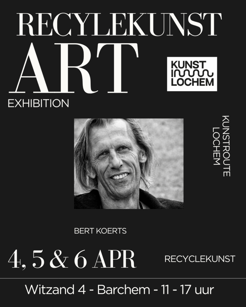 Recyclekunstenaar Bert Koerts laat zien hoe afgedankte materialen een tweede leven krijgen. Zijn beelden, gemaakt van onder meer sloopstaal, resthout en rvs-keukengerei, zijn zowel binnen als buiten te zien en sluiten aan bij zijn liefde voor de natuur en het buitenleven.